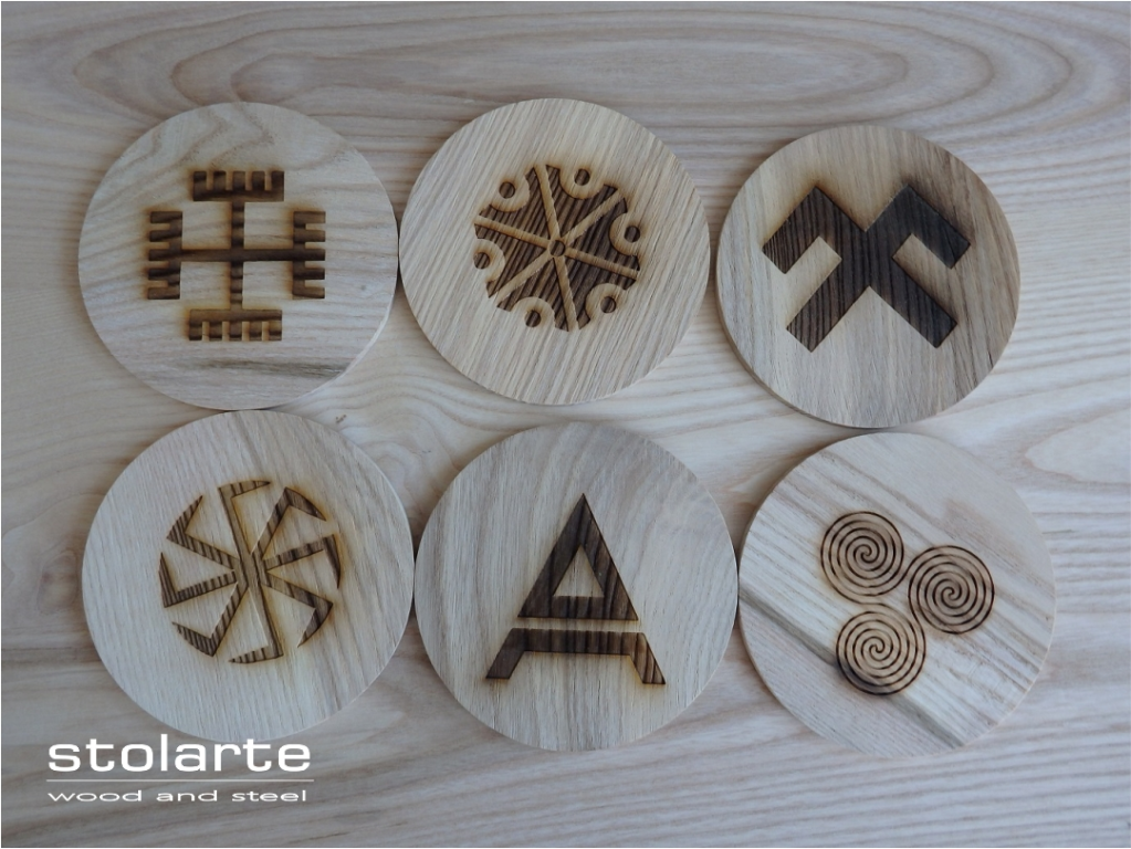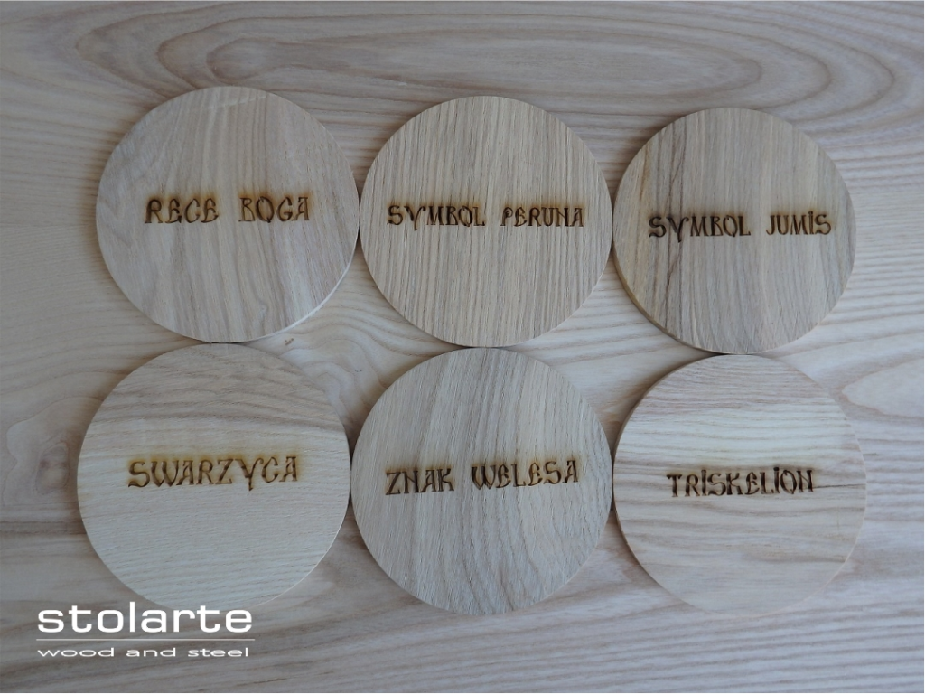 Podkładki z litego drewna z grawerem słowiańskie symbole
