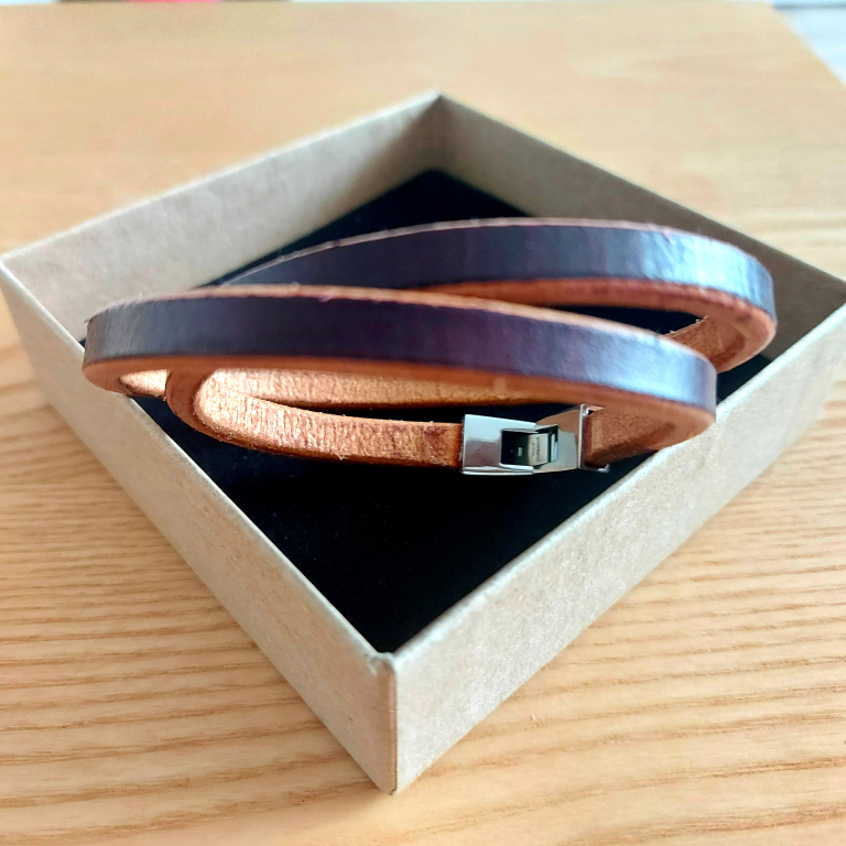 Materiał: Skóra bydlęca licowa garbowana roślinnie gr. 4-4.5mm , Zapięcie: stal nierdzewna